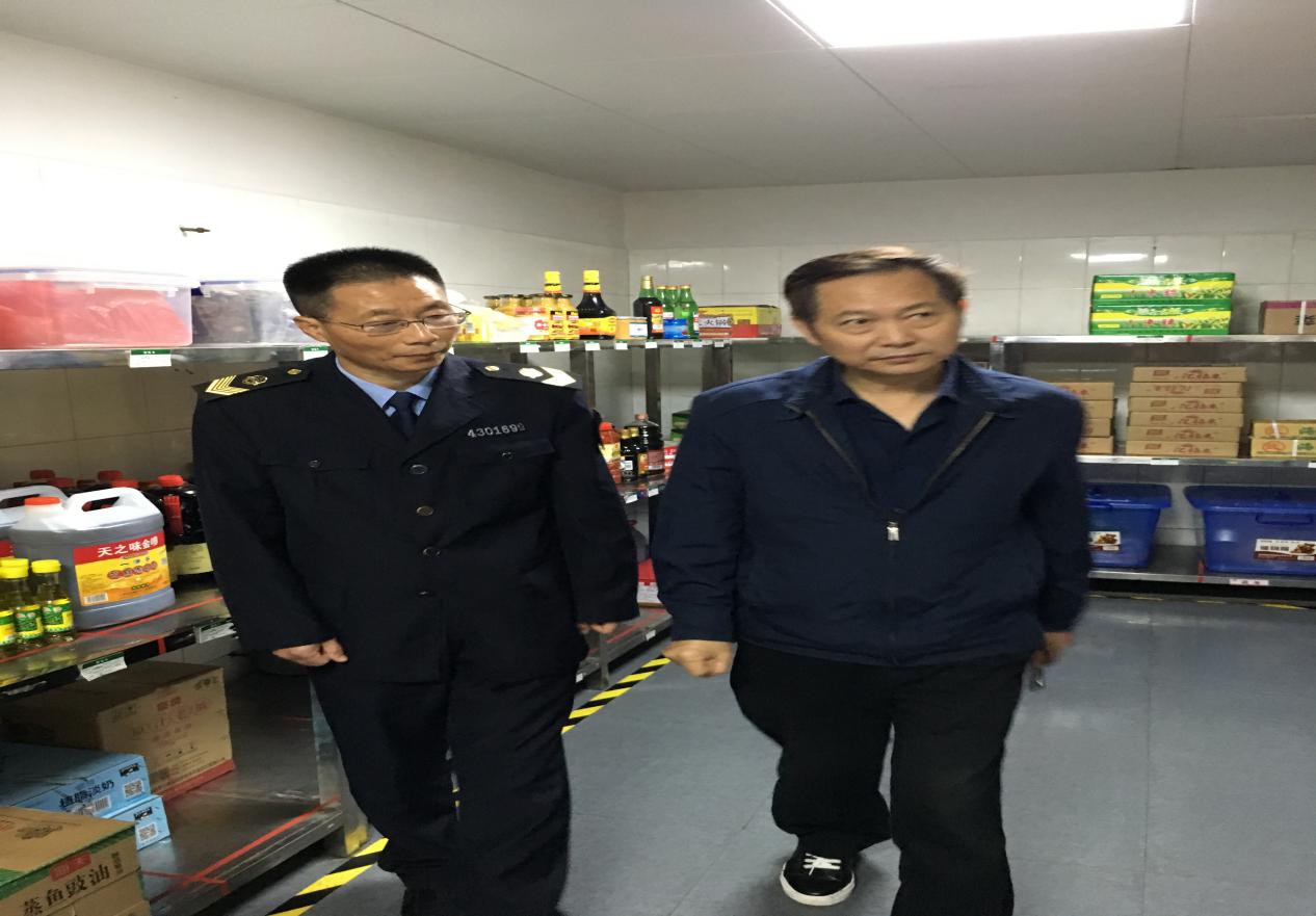 10月23日上午,由市市场监管局、市教育局、市公安局、市卫生健康委、市城管执法局等五局组成的校园食品安全整治组,对我校食堂、超市和饮用水等进行了全面检查,后勤处处长余文龙、党总支书记陈令克陪同检查。
