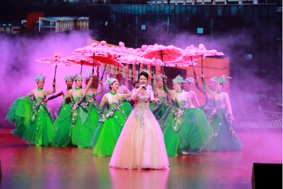 竹笛齐奏《扬鞭催马运粮忙》乐曲热情明快,音乐生动淳朴;歌舞《人人都说长大美》用甜美的歌声歌唱校园的山清水秀、草长莺飞,歌唱营造别致、优雅的自然与人文环境的老师和在美丽校园汲取着知识营养的莘莘学子;《苍歌引》作品既蕴含了诗词意境之美,也弘扬了中国“天人合一”的美学思想,彰显人与自然的和谐;舞蹈《情深谊长》,质朴而浓烈地表现出彝族同胞对一步跨千年、迈入新社会、奔向新生活的无限憧憬。