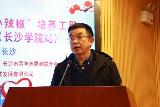 周明侠副校长在启动仪式上指出:志愿服务是一项需要全社会广泛参与的事业,推动公益事业不断向前发展,关键是必须有一支高素质的志愿者队伍,呼吁广大青年学子踊跃参加志愿服务活动,为长沙城市文明建设贡献青春力量。市青志联执行会长、教育长陈旭对培训项目作了详细说明;团市委统战联络部副部长徐力为高校志愿者解说了志愿汇服务平台的操作流程;最后共青团长沙市委副书记赵雪峰同志作重要讲话,对长沙青年志愿者“小辣椒”培养工程提出了具体要求,对高校青年志愿者提出了殷切期望,希望广大青年学子积极加入志愿者队伍行列中来,做好志愿服务精神的传承者、传播者、践行者,用青春正能量继承和丰富志愿精神。