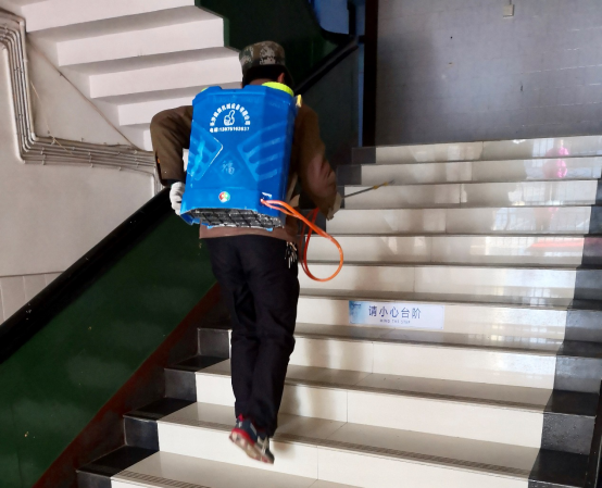 工作人员在校内重点部位开展消毒工作