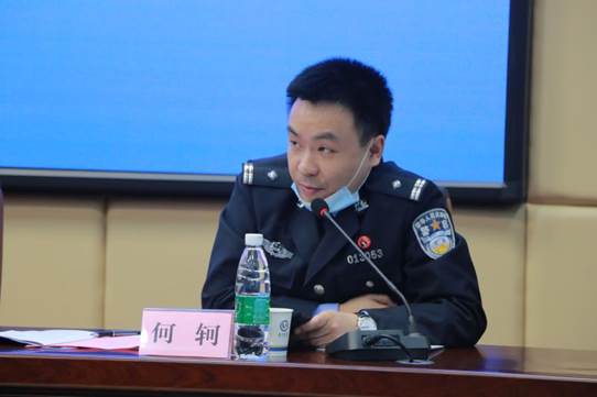何轲分析了当前疫情下复杂的社会治安形势,从做好联防联控、加强隐患排查、矛盾化解、人口管理、应急处突、征兵政审等方面对我校安全稳定和武装工作提出了意见和建议。他表示,一定尽全力提升服务水平,维护校园平安稳定,打造警校共建的“洪山样本”。
