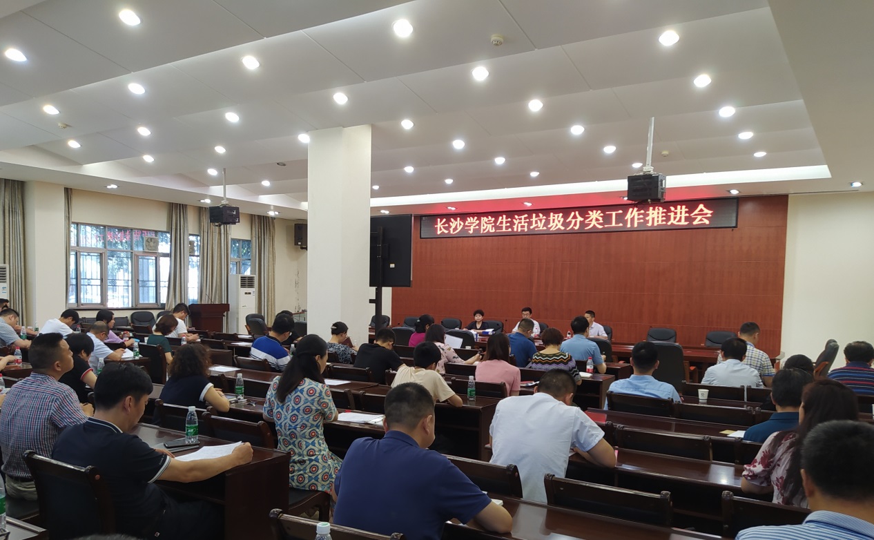 6月12日上午,长沙学院召开生活垃圾分类推进工作会议,党委委员、副校长周明侠、学校各职能处室和教辅单位主要负责人、各二级学院党总支书记、学校服务单位负责人等50多人参加会议。会议由后勤处处长余文龙主持。
