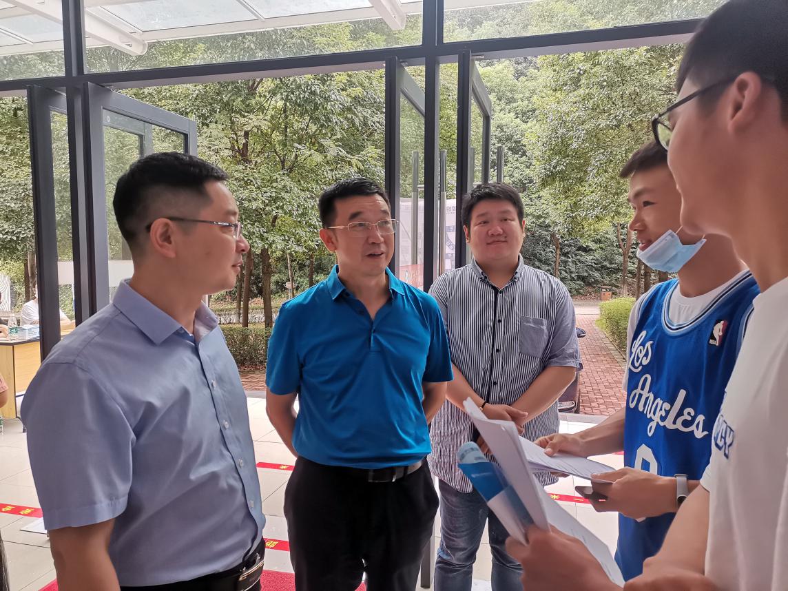 做好消毒防护、体温测量等必要的安全防护工作后,招聘会现场秩序井然、人头攒动,应聘毕业生手持精心准备的自荐书和简历,积极与招聘人员交流,主动了解用人单位情况。上午9:30,长沙学院党委委员、副校长周明侠来到现场,一一与用人单位交流,了解公司招聘要求及人才储备计划,并现场指导学生应聘,热烈的气氛吸引了不少学生驻足聆听。