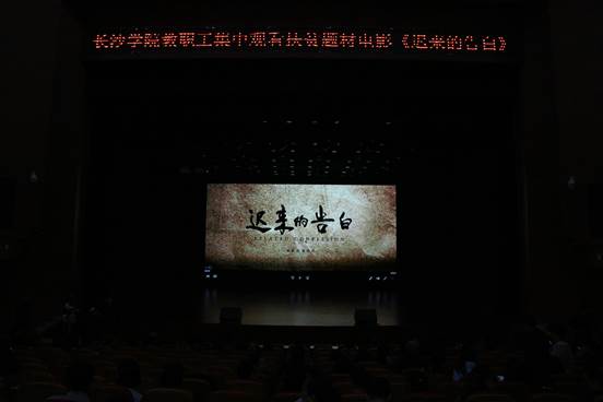 为宣扬扶贫领域先进典型,营造打赢脱贫攻坚战的良好氛围,11月3日下午,我校组织统战部组织教职工在大礼堂观看了扶贫题材电影《迟来的告白》。党委副书记屈林岩,党委委员、组织统战部部长何利华以及四百余名教职工一起观影。