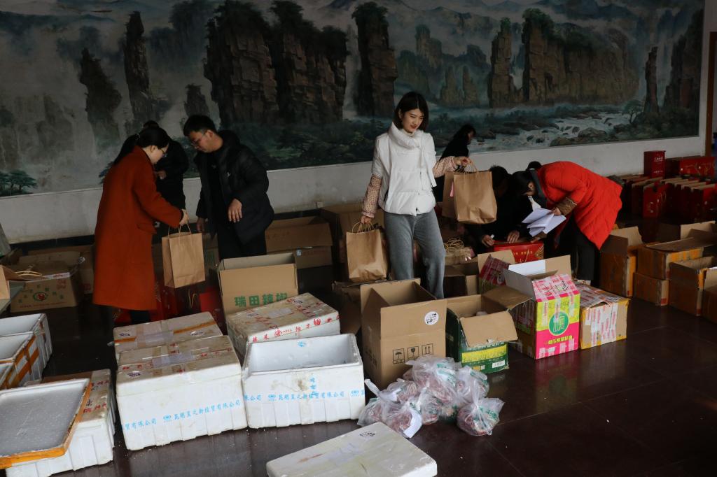 11月下旬,我校就开始在全校范围内对大安乡农特产进行预购宣传和预定统计。12月21日,由大安乡人民政府在村民手中统筹采购的农家腊肉、农家土鸡、农家土蜂蜜、农家大头菜、大安糍粑等一批优质农特产品运达我校,在老图书馆一楼大厅内卸货分发。