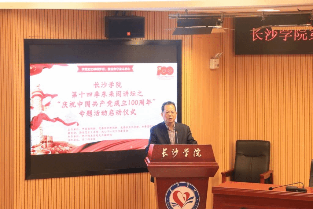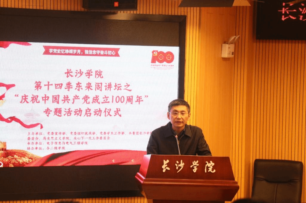 4月13日下午,由我校党委宣传部、统战部、学工部、校团委、校关工委主办,电子信息与电气工程学院承办的第十四季“东来阁讲坛”启动仪式在新图书馆学术报告厅举行。长沙学院校关工委副主任杨兴龙、电信学院原院长刘光灿、马克思主义学院党总支书记谷建春、电信学院党总支书记张海涛、院长朱培栋、校团委副书记张镇、党委宣传部副部长肖燕芳、学工部副部长胡小毅以及各学院师生代表参加启动仪式。