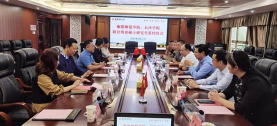 随后,我校校长黄立宏、衡阳师范学院校长皮修平代表两校签订硕士研究生联合培养协议。根据联合培养协议,我校将选送优秀教师作为衡阳师范学院硕士研究生导师,组建双方合作的导师团队,在相关学科领域联合培养研究生。
