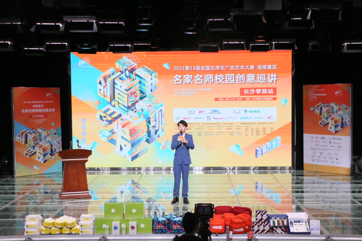 5月18日下午,由全国大学生广告艺术大赛(以下简称:大广赛)湖南赛区组委会主办、长沙学院承办的第十三届大广赛湖南赛区名家名师校园创意巡讲活动在力行楼演播厅顺利开展。长沙学院教务处处长杨建宏教授,湖南师范大学王战教授,华侨大学硕士生导师江绍雄教授以及大广赛五大品牌商负责人出席本次巡讲。此外,来自影视艺术与文化传播学院、艺术设计学院的参赛师生,参与本次活动。