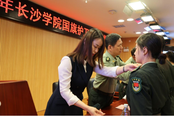 5月18日,学校为校园国旗护卫队举行授衔仪式。副校长祝磊同志,学工部、武装部、校团委等部门相关负责人应邀出席,全体国旗护卫队和教官团参加了此次授衔仪式。与会领导为新老队员授予新衔,全体队员进行了庄严宣誓并奏唱国旗护卫队队歌,学生代表邹翔作了代表发言。