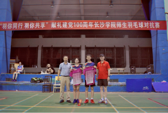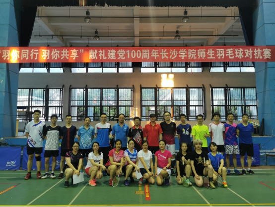 为丰富我校师生的课余文化生活,营造运动、健康向上的校园文化氛围,同时增进师生之间的友谊。在庆祝建党100周年之际,6月15日晚,我校体育学院、教工羽毛球协会和校学生羽毛球队在永康体育馆一楼联合举办了“羽你同行 羽你共享”——献礼建党100周年长沙学院师生羽毛球对抗赛。党委委员、副校长、教工羽毛球协会会长祝磊出席并参加赛事,来自教工羽毛球协会和学生羽毛球队的24名师生队员,共同为现场师生观众奉献了10场精彩纷呈的羽球盛筵。