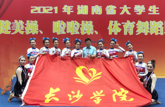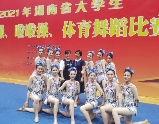 6月15日,由湖南省教育厅主办的2021年湖南省大学生健美操、啦啦操、体育舞蹈比赛在湖南师范大学体育馆开幕。我校代表队在体育学院副院长、领队刘战红,教练员刘丽丽的带领下,取得了三金一银、团体总分第一名的优异成绩。