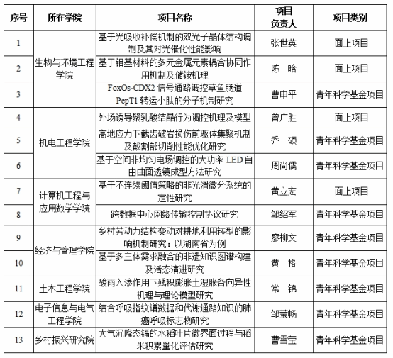 附:长沙学院教师主持的2021年国家自科基金项目立项清单(至8月18日)