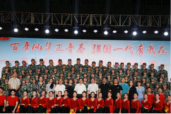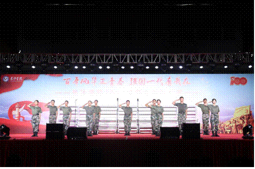 甘将热血沃中华,笑看旌旗红似花。军训教官代表队的开场表演《热血沃中华》以整齐划一的动作点燃全场观众的热情,“请党放心!”“强国有我!”台上台下互动,青春力量燃爆夜空,军歌大赛正式拉开了帷幕。