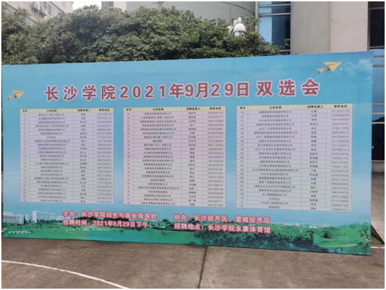 围绕服务地方,创新合作形式,校、企、政多方形成合力,为长沙经济发展提供人才资源。9月29日,长沙经济技术开发区(国家级)和望城经济技术开发区针对我校的专业分布情况和长沙市“智能制造、重型装备、生物医药”等产业集群,重点筛选出近80家企业入校招聘。