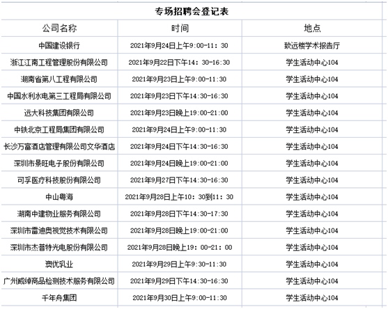 与此同时,中国建设银行、中铁五局、澳优乳业、远大科技等“中”字头企业、上市公司、本土知名企业先后来校开展专场宣讲,积极抢招我校毕业生。