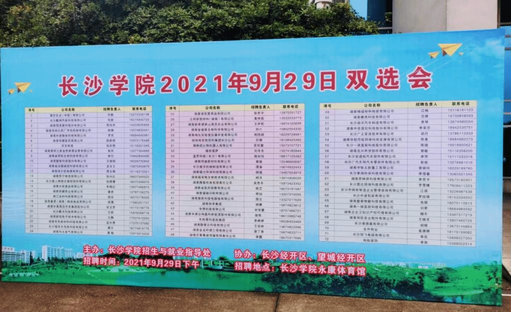 9月29日下午,招生与就业指导处联合长沙经济技术开发区(国家级)和望城经济技术开发区(国家级)在永康体育馆一楼举办双选会。这是我校为2022届毕业生举办的第三场大型双选会,共有80家企业参与,达成初步就业意向207人。