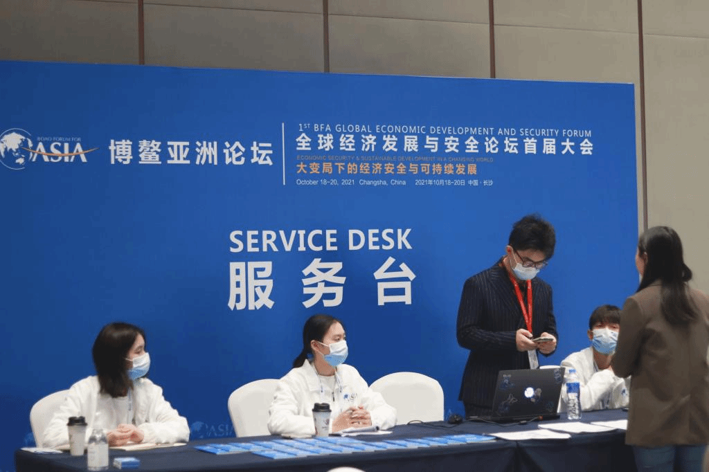 10月18日至10月20日,以“大变局下的经济安全与可持续发展”为主题的博鳌亚洲论坛全球经济发展与安全论坛大会在长沙国际会议中心成功举办。长沙学院122名大学生志愿者以热情友好的工作态度、积极饱满的精神状态、严谨认真的工作作风、规范专业的服务水准,高质量圆满完成各项志愿服务工作,赢得了组委会、团市委、参会嘉宾和媒体的广泛赞誉,为助力论坛成功举办贡献了长大力量。