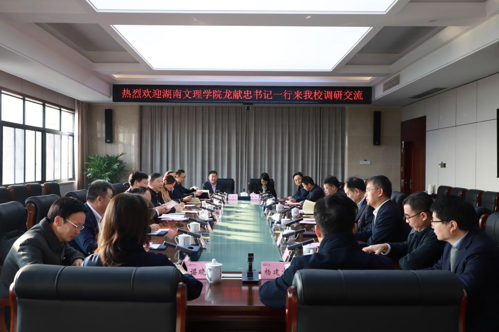 湖南文理学院党委书记龙献忠对我校的热情接待表示感谢,并介绍了湖南文理学院的基本情况。他希望通过此次交流,学习借鉴我校在党建与意识形态工作、教育教学改革、人事工作、科研工作等好的做法,加强两校的交流合作,共同努力提升办学层次和办学水平。