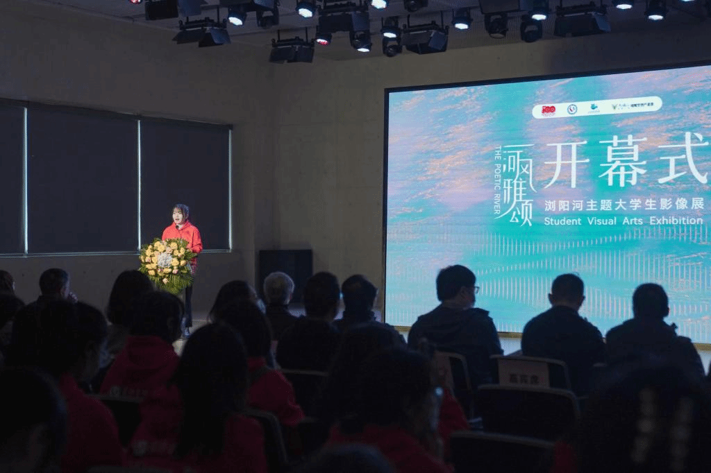 11月26日上午,由中共长沙市委宣传部指导,长沙学院主办,长沙学院马栏山新媒体学院承办,中共浏阳市委宣传部、马栏山视频文创产业园支持的“一河风雅颂——浏阳河主题大学生影像展”在谢子龙影像艺术馆开幕。