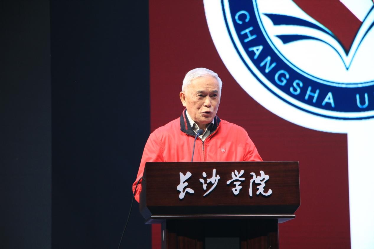 在题为“读懂长沙大学 再造历史辉煌”的报告中,老校长李峻从“一部曲折的创业史”“一首昂扬的精神赞歌”“一席坦诚的心语交流”三个方面展开,通过几个重要的时间节点和经典故事,重温了建校以来曲折的创业历史,深刻阐述了我校在五十多年办学历程中一批又一批长大人接续唱响的一首昂扬的精神赞歌,特别是湖湘文化铭刻在长大人心中“敢为人先的开拓精神、百折不挠的霸蛮精神、兼收并蓄的包容精神、经世致用的务实精神”在学校发展历程中产生的重要影响,鼓励着新长大人为学校实现“三升三大”战略目标奋勇前进。通过老校长的深情讲述,鼓舞着在场的青年学子更加了解长大、更加理解长大、更加热爱长大,更加维护长大。更坚定了努力学习、努力奋斗、努力争光、努力奉献的信心决心。