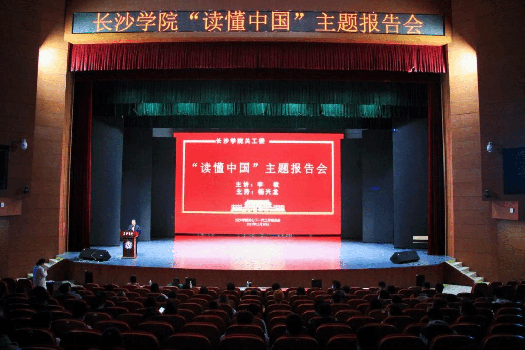 11月30日下午,长沙学院关工委、校团委联合举办“读懂长大”“读懂中国”两场报告会。报告会邀请了长沙大学老校长李峻教授和长沙市党史办副主任、二级调研员李敏同志主讲,报告会由校关工委常务副主任杨兴龙主持,200余名团学干部聆听了报告。