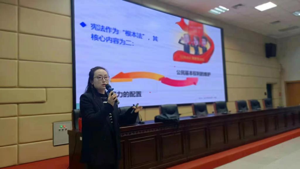 法学院老师柳湘从感受宪法的温度、触摸宪法的温度、调试宪法的温度和传递宪法的温度四个维度向大家讲述宪法与公民生活的关系。讲座生动有趣,同学们积极互动。