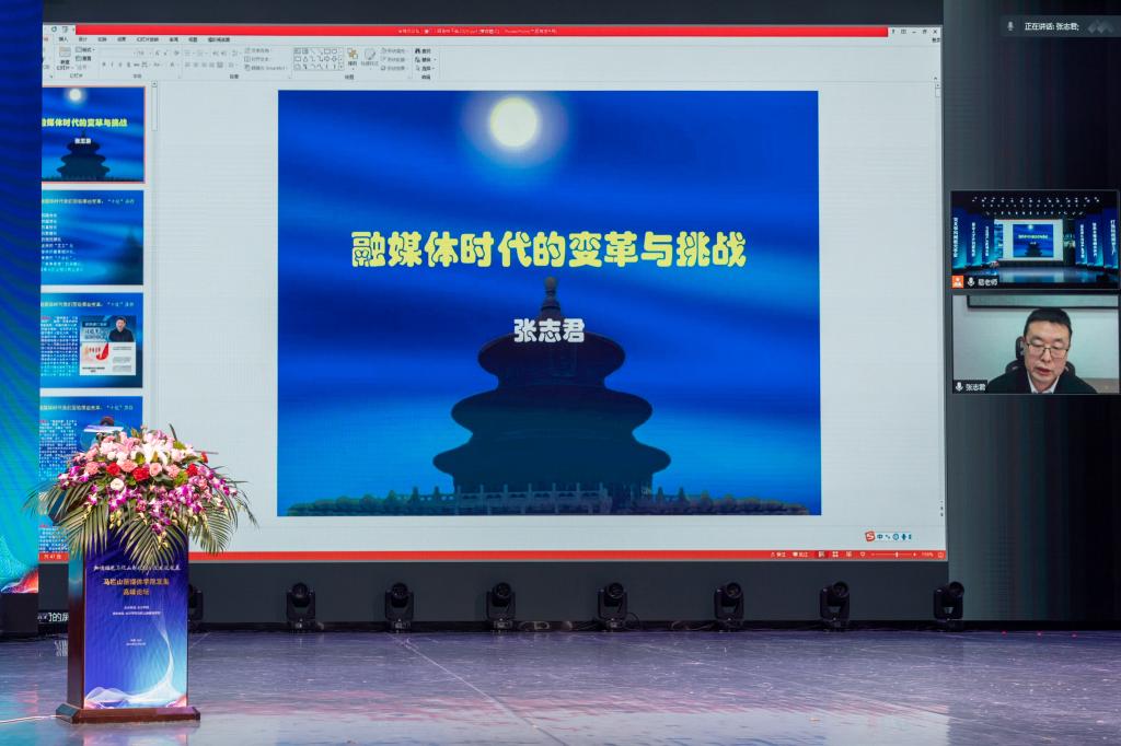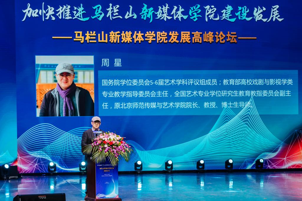 长沙市政协党组副书记陈刚在发言中表示,依托长沙学院创办马栏山新媒体学院,是省委省政府、市委市政府的重大决策部署。加快马栏山新媒体学院建设是落实习近平总书记考察马栏山视频文创产业园重要讲话精神的现实需要,也是助力长沙市推进马栏山文创园建设、打造国际文化创意中心的重要路径。他号召,要以此次高峰论坛为契机,进一步解放思想、科学谋划,紧密对接马栏山视频文创产业园,坚持“文化+科技”深度融合发展,牢牢把握正确舆论导向,运用好区位优势、政策优势和科教优势,全力打造马栏山新媒体学院的育人、科创、智库品牌,为马栏山视频文创产业园建设和长沙国际文化创意中心的打造提供更强有力的人才支撑和智力支持!