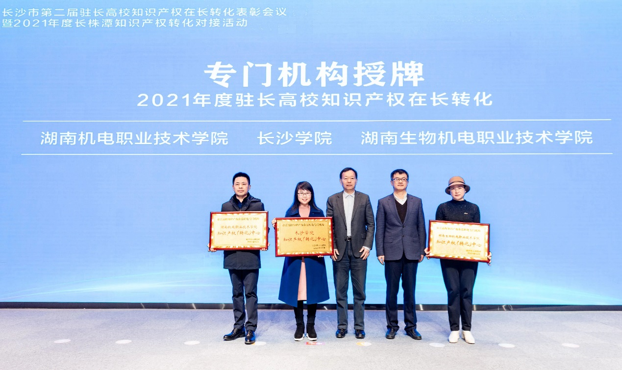 据悉,自2019年7月长沙市政府出台《长沙市促进驻长高校知识产权在长转化若干措施》以来,长沙市每年拨付高校知识产权公共专项资金1000万元,用以激励和表彰知识产权转化成效突出的高校、创新团队和服务机构,推动高校成立知识产权转化专门机构,建立标准化知识产权管理体系。我校在这一政策号召下,坚持创新驱动发展战略,盘活资源、协同发力,牢牢把握“长株潭一体化”战略新机遇,推动我校知识产权在长转化结出丰硕成果。