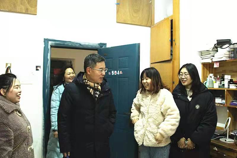 12月29日下午,党委委员、副校长张世英深入艺术设计学院和马栏山新媒体学院学生宿舍进行安全专项检查,了解学生期末复习迎考状态,为同学们鼓舞打气。艺术设计学院和马栏山新媒体学院主要负责人陪同走访。