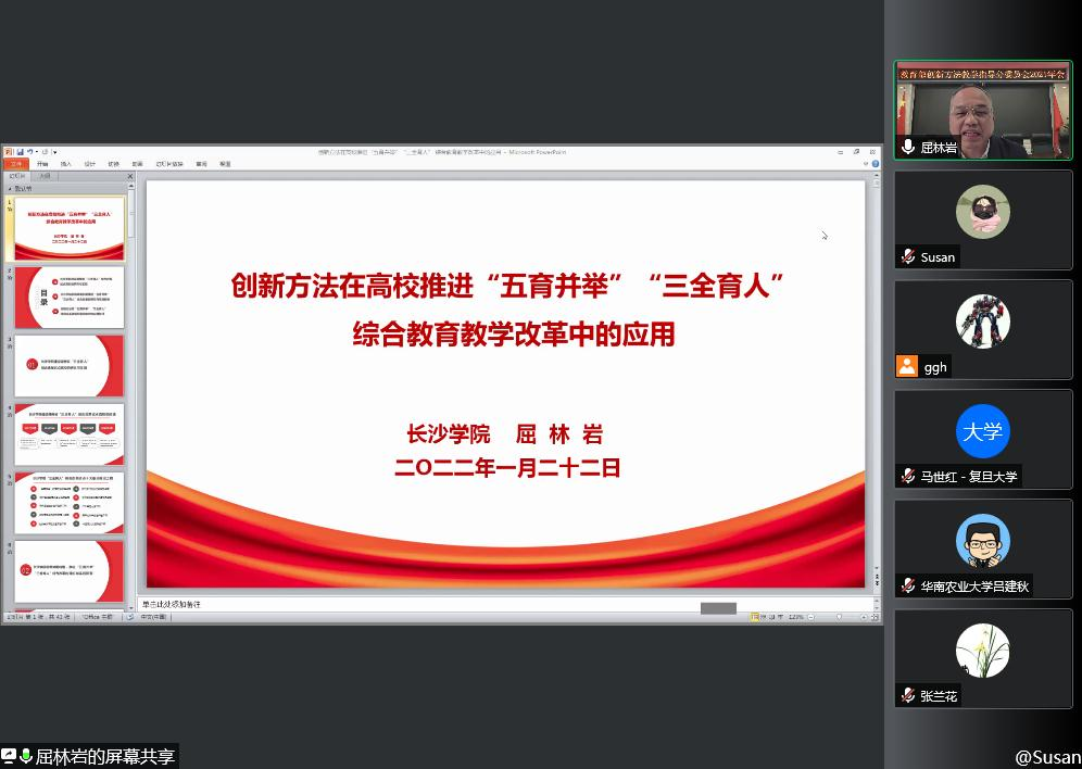 长沙学院应邀以《创新方法在高校推进“五育并举”“三全育人”综合教育教学改革中的应用》为题作大会主题报告