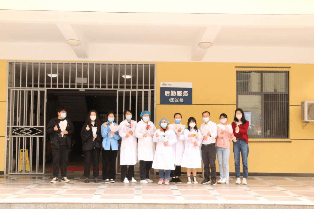 同学们为校园防疫一线的医务人员献花