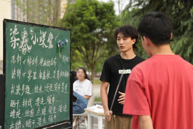 之后三天热度不减,由于天气状况,活动场地由室外更改到丹青楼1104房间,同学们热情依然高涨,每天都有不少人前来学习与体验。作为此次活动的策划者,艺术设计学院2019级服装设计专业的学生同时也是缬之工作室的负责人何洋说道:“为了举办好此次活动,我们工作室成员几乎是夜以继日准备物料,布置场地,克服了重重困难,期间还获得了学院领导、老师以及众多好友协助,才让活动顺利进行。结束后我们收到了大家很多正向的反馈。”