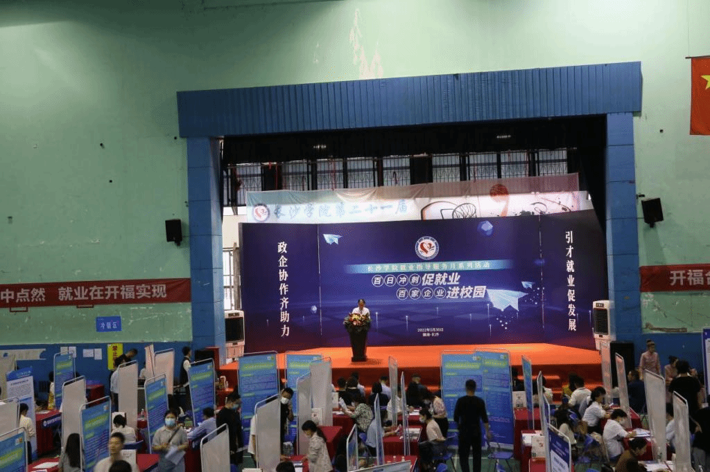 为贯彻落实党中央和国务院关于高校毕业生就业工作的指示精神。5月30日下午,我校在永康体育馆一楼举行“百日冲刺促就业,百家企业进校园”大型招聘会暨就业基地授牌仪式。开福区人力资源和社会保障局党组成员、副局长柳义军,开福区就业服务中心主任夏颂,浏阳经开区社会事务中心刘亚洲科长,我校党委副书记、校长黄立宏,党委副书记汤文胜,副校长陈世平,党委委员、副校长张世英,党委委员、纪委书记丁文,党委委员、副校长祝磊出席仪式,相关企业代表和二级学院的党总支书记、就业专干,300余名毕业生参加仪式。会议由副校长陈世平主持。