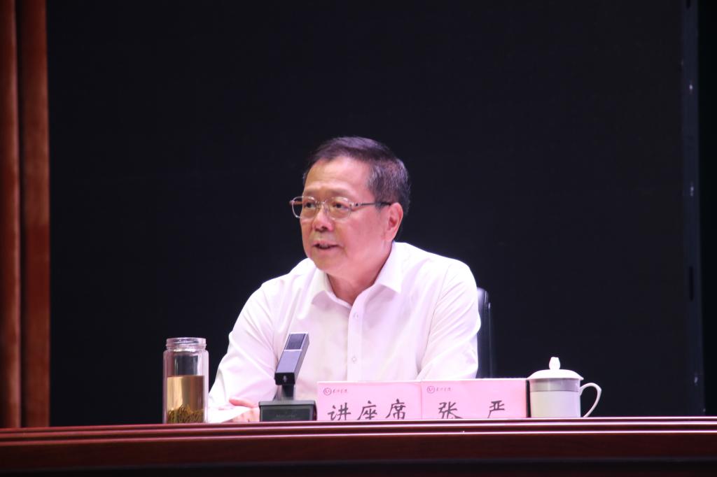 党委书记杨小云致辞,对张严同志莅临我校作讲座表示热烈欢迎。党委副书记、校长黄立宏为张严同志颁发特聘教授证书,聘任张严同志为我校特聘教授。