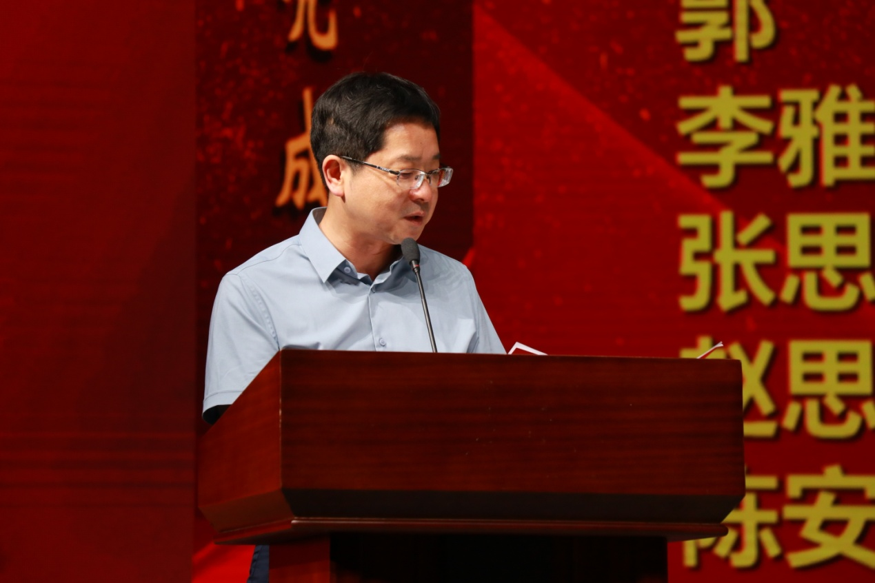 祝磊对此次获奖的同学表示热烈祝贺,并向同学们提出了三点希望:一是要争做一名有理想的大学生,以理想之光激励自己不断向前;二是要争做一名有本领的大学生,扎实学习知识技能,努力提升个人本领;三是要争做一名有担当的大学生,将个人的命运与国家的命运紧密结合,志存高远、勇往直前。
