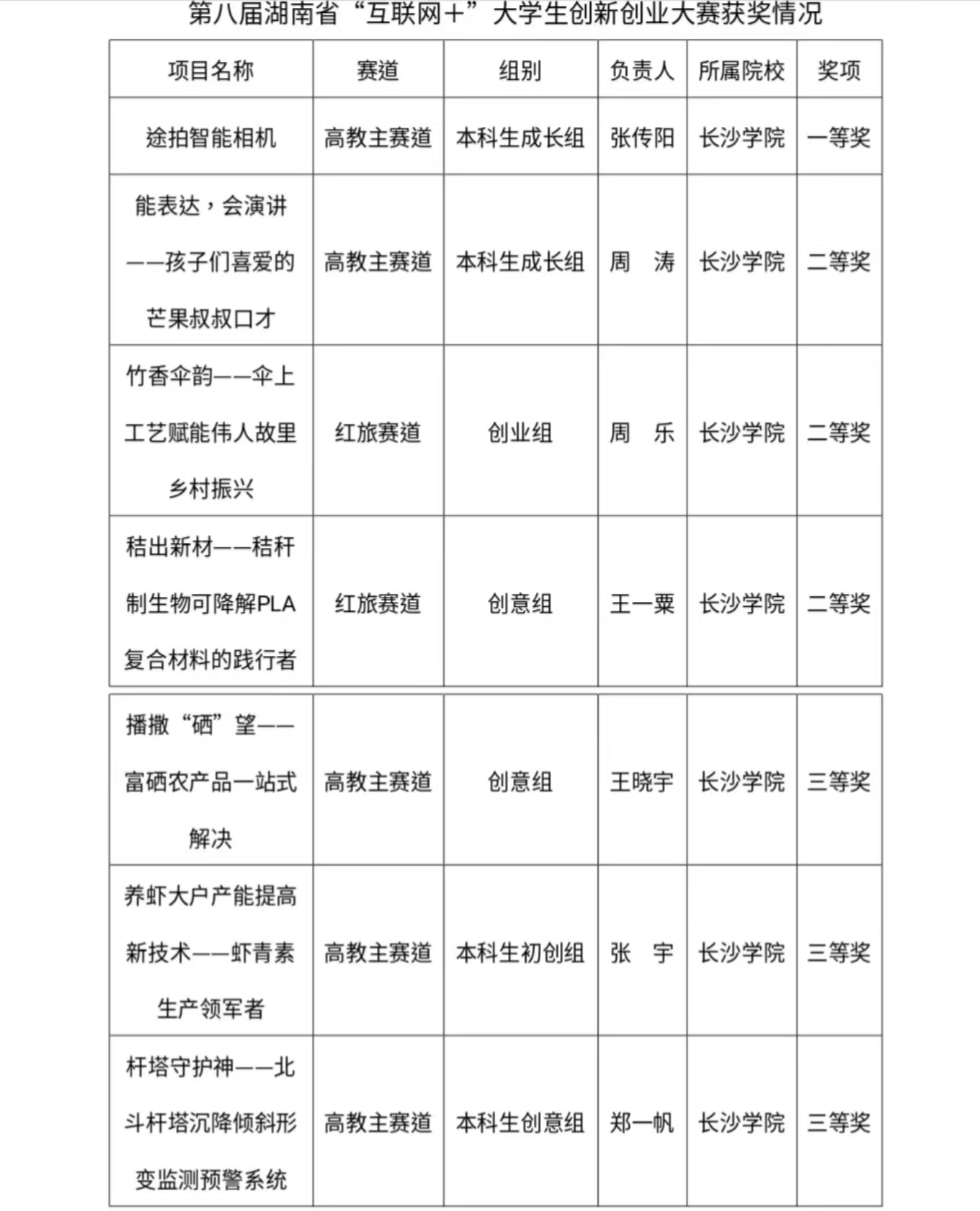 8月6日,第八届湖南省“互联网+”大学生创新创业大赛暨国赛选拔赛在湖南工商大学落下帷幕。我校喜获佳绩,《 途拍智能相机》《能表达,会演讲——孩子们喜爱的芒果叔叔口才》《竹香伞韵--伞上工艺赋能伟人故里乡村振兴》等3个项目入围国赛。