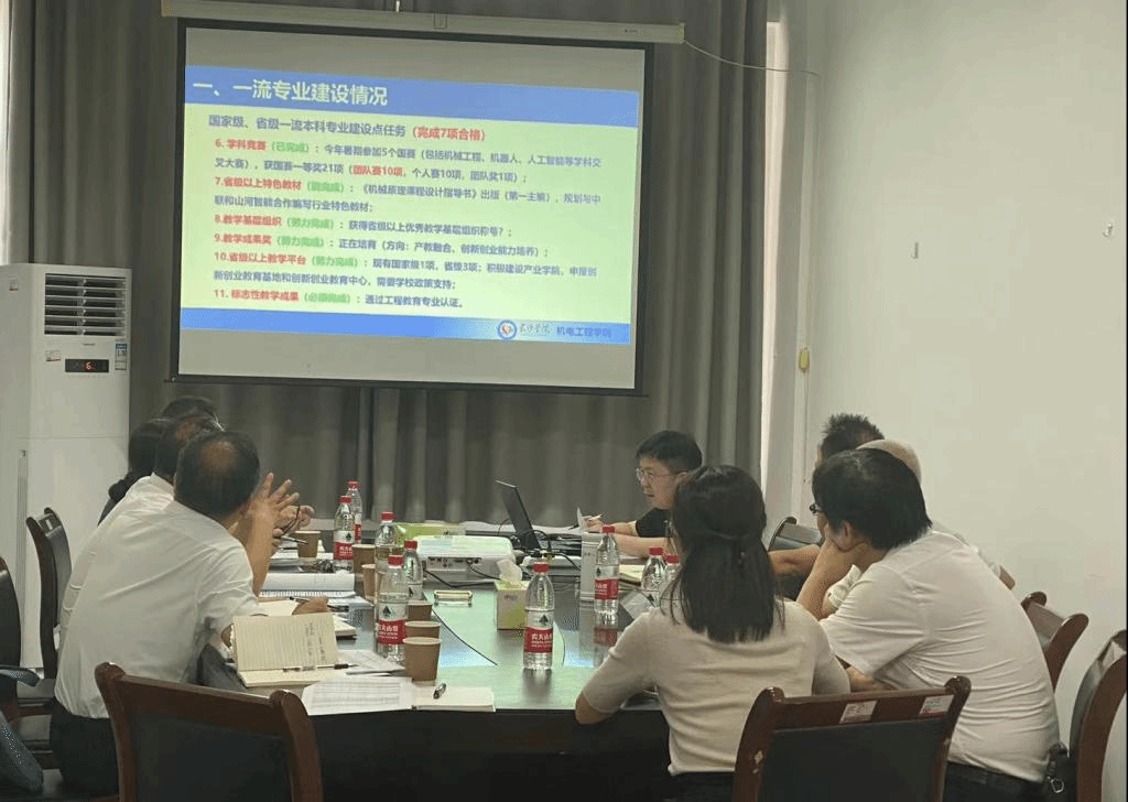 调研会上,机电工程学院院长、电子信息与电气工程学院院长分别从目前准备情况、下一步工作重点、遇到的困难和解决方案等方面进行了汇报。大家围绕一流本科专业建设、工程教育专业认证申报、国家级一流课程打造、产教融合及学科竞赛等内容进行了深入讨论,提出了意见和建议。