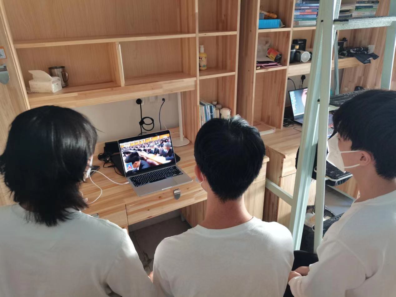 其他师生分别在寝室和家里认真收看了党的二十大的开幕会。