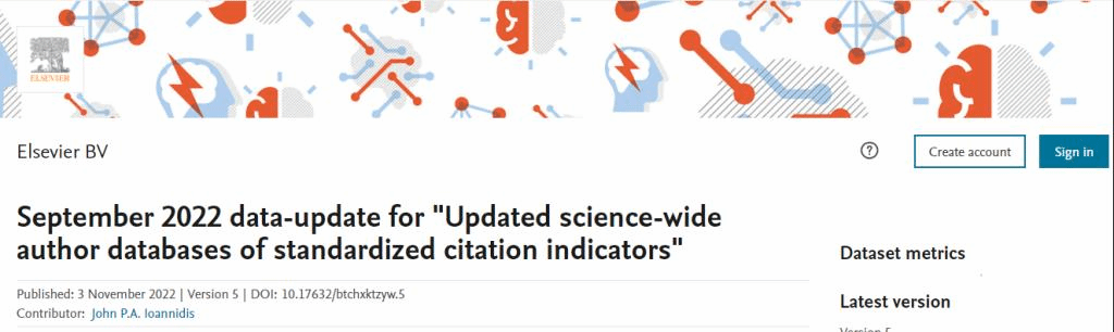 近期,斯坦福大学John P. A. Ioannidis教授团队更新了其发布的全球前2%顶尖科学家榜单,并在Elsevier旗下Mendeley Data发布了(September 2022 data-update for“Updated science-wide author databases of standardized citation indicators”)。从近700万名科学家中遴选出世界排名前2%的科学家,该榜单分为“终身(career)科学影响力排行榜”和“2021年度(singleyr)科学影响力排行榜”两个榜单。