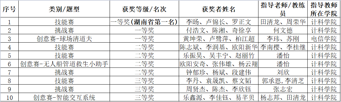 3月18至19日,湖南省第六届大学生物联网应用设计竞赛在长沙师范学院举行,我校学子再创佳绩,获得一等奖3项、二等奖4项、三等奖4项,总分位居全省第一。学校获得优秀组织奖,何文德、田清龙、李玮三位老师获评优秀指导教师。