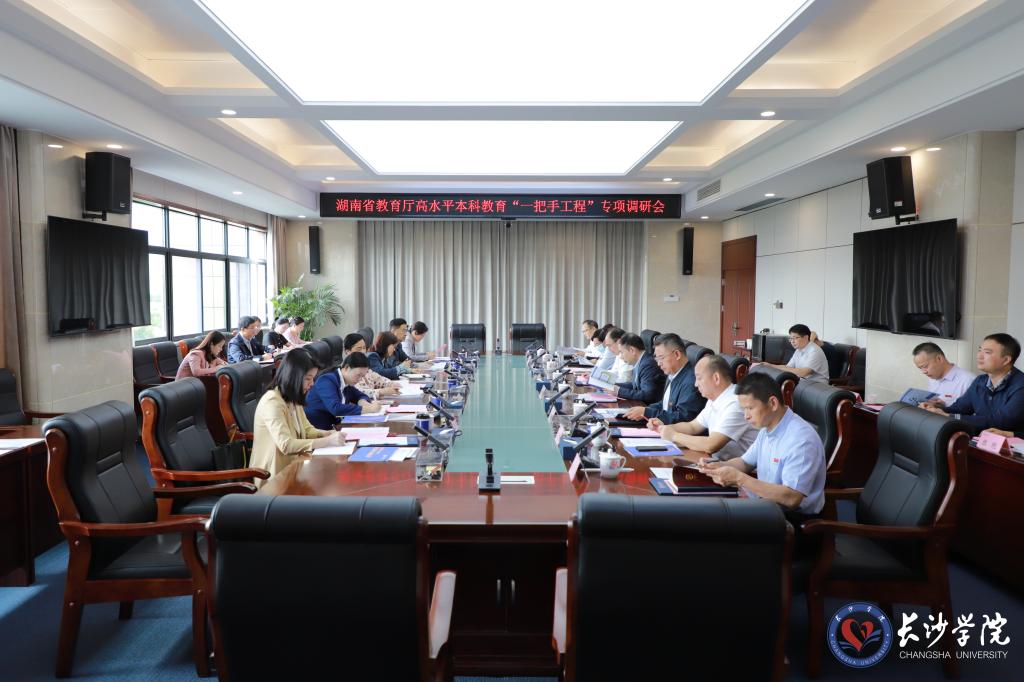 5月24日,由湖南工商大学副校长张玲、省教育厅高教处副处长周军、湖南第一师范学院教务处处长张娴、长沙师范学院教务处处长蔡华、长沙理工大学教务处副处长蒋菲一行5人组成的省教育厅专家组来我校开展高水平本科教育“一把手工程”专项调研。专家组通过听取汇报、查看资料、实地走访、随机访谈等多种方式,深入调研了学校高水平本科教育“一把手工程”主要成绩、特色与亮点,听取了师生关于进一步加强高水平本科教育工作的意见和建议。党委书记杨小云出席汇报会并致辞,党委副书记、校长黄立宏主持汇报会,党委委员、副校长曾广胜作专项工作汇报。