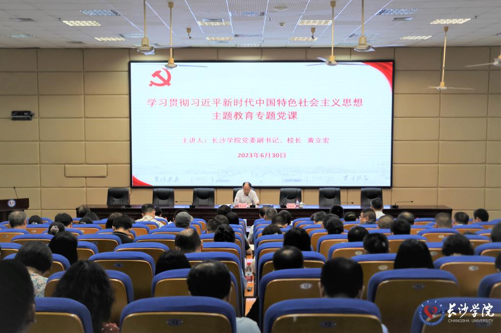 随后,党委副书记、校长黄立宏为与会党员讲授了题为《汲取真理力量 感悟实践伟力 奋力推进学校高质量发展再上新台阶》的主题教育专题党课。他在党课中强调,作为高校教育工作者,在进一步推动主题教育走深走实进程中,全校党员、干部要立足高等教育来学习和贯彻落实党的二十大精神,尤其是对习近平总书记关于高等教育的重要论述要深学一层、厚悟一分、先行一步,要坚持以习近平新时代中国特色社会主义思想为指导,深入学习贯彻党的二十大精神,从主题教育中汲取真理力量、感悟实践伟力,奋力实施“三升三大”战略,推进学校高质量发展再上新台阶!