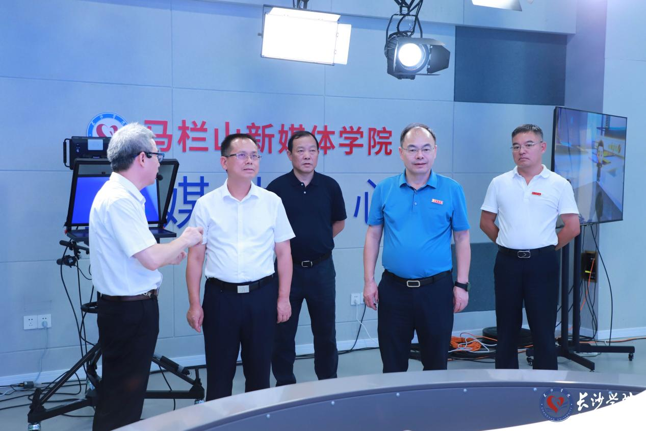 市委组织部副部长、市委人才工作局局长易敏华,办公室主任欧阳潇卓,马栏山视频文创园党工委副书记、管委会主任易鹰,学校党政办、宣传部、人事处、教务处及马栏山新媒体学院有关负责人陪同调研。