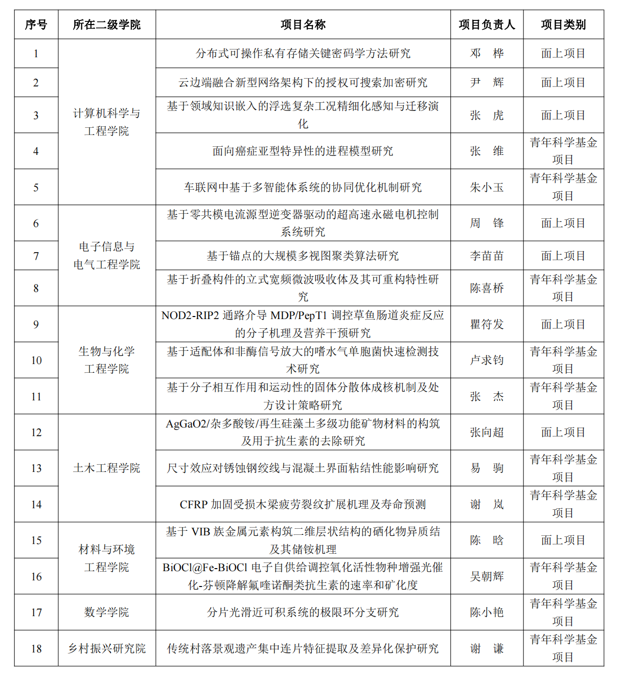 长沙学院2023年国家自科基金项目立项清单(至2023年8月24日)
