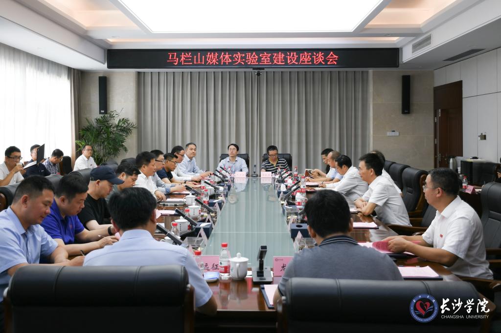9月18日上午,湖南省委宣传部副部长、省广播电视局党组书记、局长贺辉在我校主持召开马栏山媒体实验室建设座谈会,华为2012实验室中央媒体技术研究院总裁李江、湖南政企副总经理兰俊、资深咨询专家鲁维,省广电局党组成员、副局长肖荣,湖南广播影视集团有限公司(湖南广播电台)党委委员、副总经理、副台长朱皓峰等政企专家,党委书记杨小云及全体在校校领导出席座谈会,就推进马栏山媒体实验室建设、马栏山新媒体学院建设和政校企研深度合作等领域进行了交流。