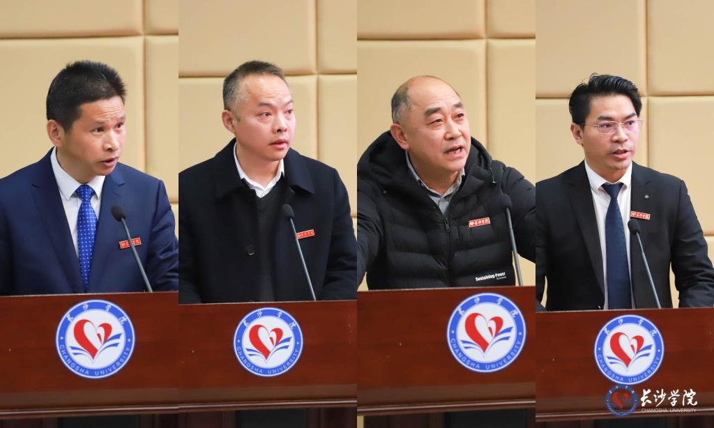(述职现场,从左至右:党政办主任余文龙、人事处处长蒋晓东、土木工程学院院长匡希龙、音乐学院院长李巧伟)