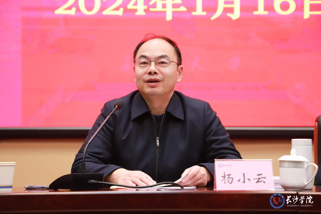 杨小云在讲话中对全校各单位取得的成绩给予了充分肯定。他指出,过去的一年,是学校“硕果累累、全面进步”的一年,全校上下团结奋进、真抓实干,学校各项事业整体上实现了高质量发展,产出了一批标志性办学成果,学校的办学实力和知名度得到了较大幅度的提升,各二级单位正在以扎实有效的工作推动学校事业高质量发展、不断开拓新局面。