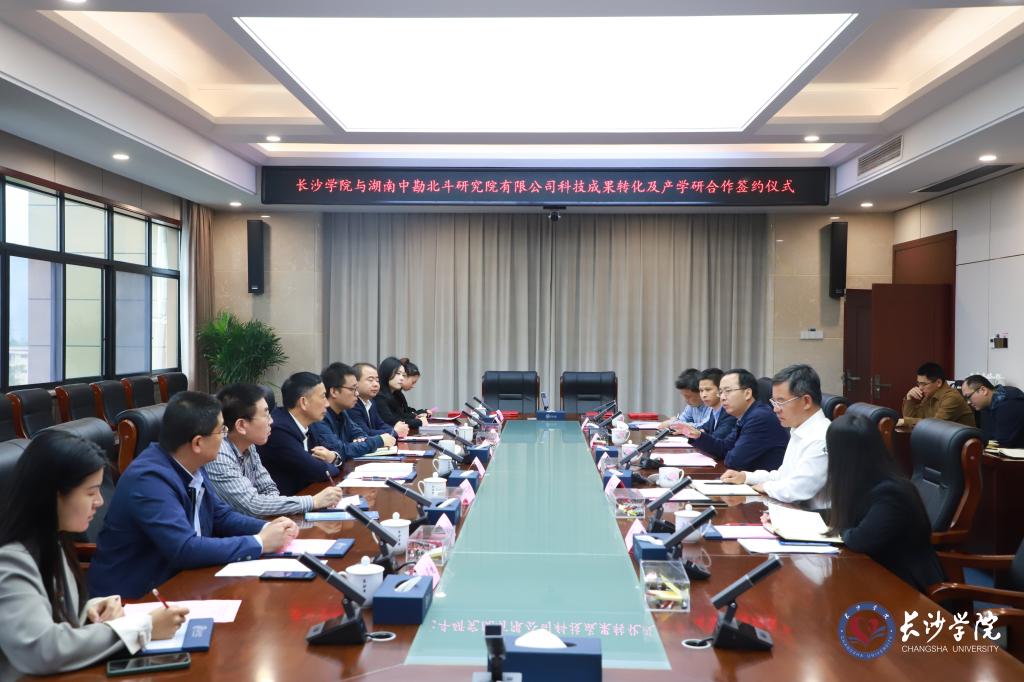 4月3日上午,长沙学院与湖南中勘北斗研究院有限公司科技成果转化及产学研合作签约仪式在长盛楼4001室举行,我校智能感知与信息处理技术18项相关专利成功签约落地转化。校长陈赤平,长沙市知识产权局党组成员、副局长黄向红,运用促进处处长曹磊,湖南中勘北斗研究院有限公司董事长余靖、总经理谢江岸等出席签约仪式。仪式由党委委员、副校长张世英主持。