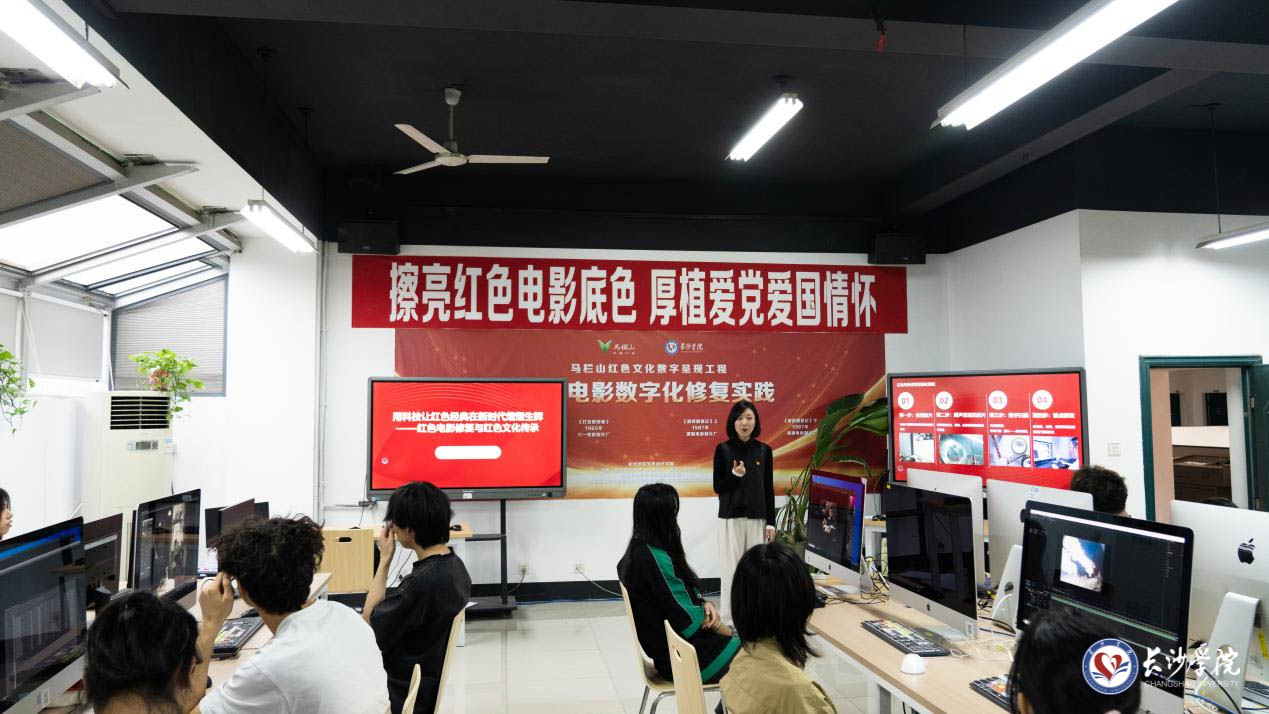 本次展映的影片均来自由中共长沙市委宣传部委托马栏山视频文创园牵头的红色文化数字呈现工程电影修复项目,由我校艺术设计学院承担具体修复任务。为了高质量地完成修复工作,学院精心组建了一支规模超过100人的修复团队,按照行业需求和电影的实际情况,应用马栏山人工智能上色平台和相关的数字修复技术、音视频处理技术等手段来恢复电影的原始面貌。与此同时,为了确保修复服务的质量,艺术设计学院还搭建了一套完善的修复生产线、开展了一系列的修复人员技能培训、建立了一套完善的修复成果评估和检测的质量保证体系。目前,修复团队已完成了《湘西剿匪记》上、下集的修复工作,去除了影片中的划痕、噪点等瑕疵,恢复了画面的色彩和对比度,累计修复了超过44.3万帧影像画面,实现了影片5.1声道音频及声画合成输出。