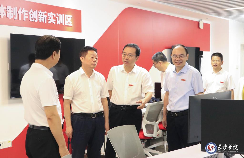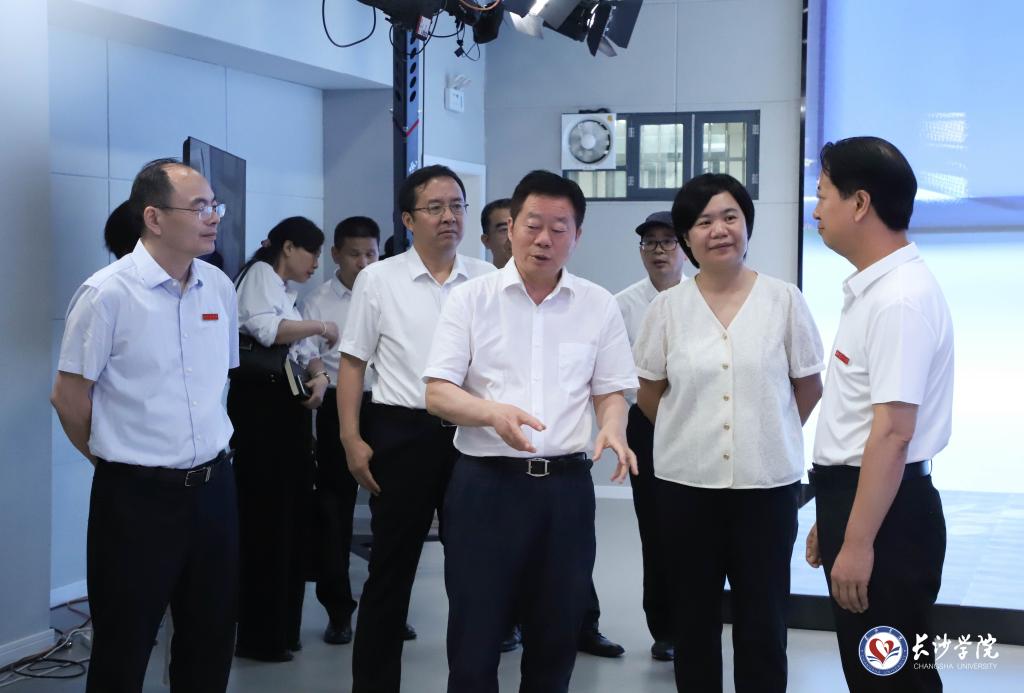 何寄华一行参观了马栏山新媒体学院,详细了解了该学院办学情况和实验实训中心及短视频工厂的建设发展情况。